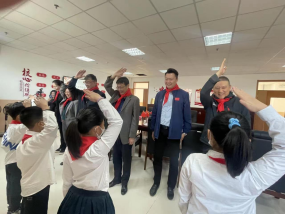 4月25日上午𓀀,学院党委副书记🤔、院长王伟、院党委委员🚻、副院长沈茹劼及相关工作负责同志一行六人来到天津复兴小学,复兴小学准备了一场别开生面的欢迎仪式,为与会来宾佩戴红领巾,行少先队队礼。