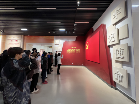 “我志愿加入中国共产党,拥护党的纲领,遵守党的章程……”参观尾声,在党委书记带领下,全体党员面对鲜红的党旗,郑重举起右拳✍🏽,庄严宣誓,铿锵誓言掷地有声🧜🏻♂️。通过重温入党誓词🙇🏿♀️,使党员同志牢记初心使命,坚定理想信念,始终保持党员的先进性,保持共产党员的本色,进一步强化党员意识❤️,不断坚定共产主义理想信念。